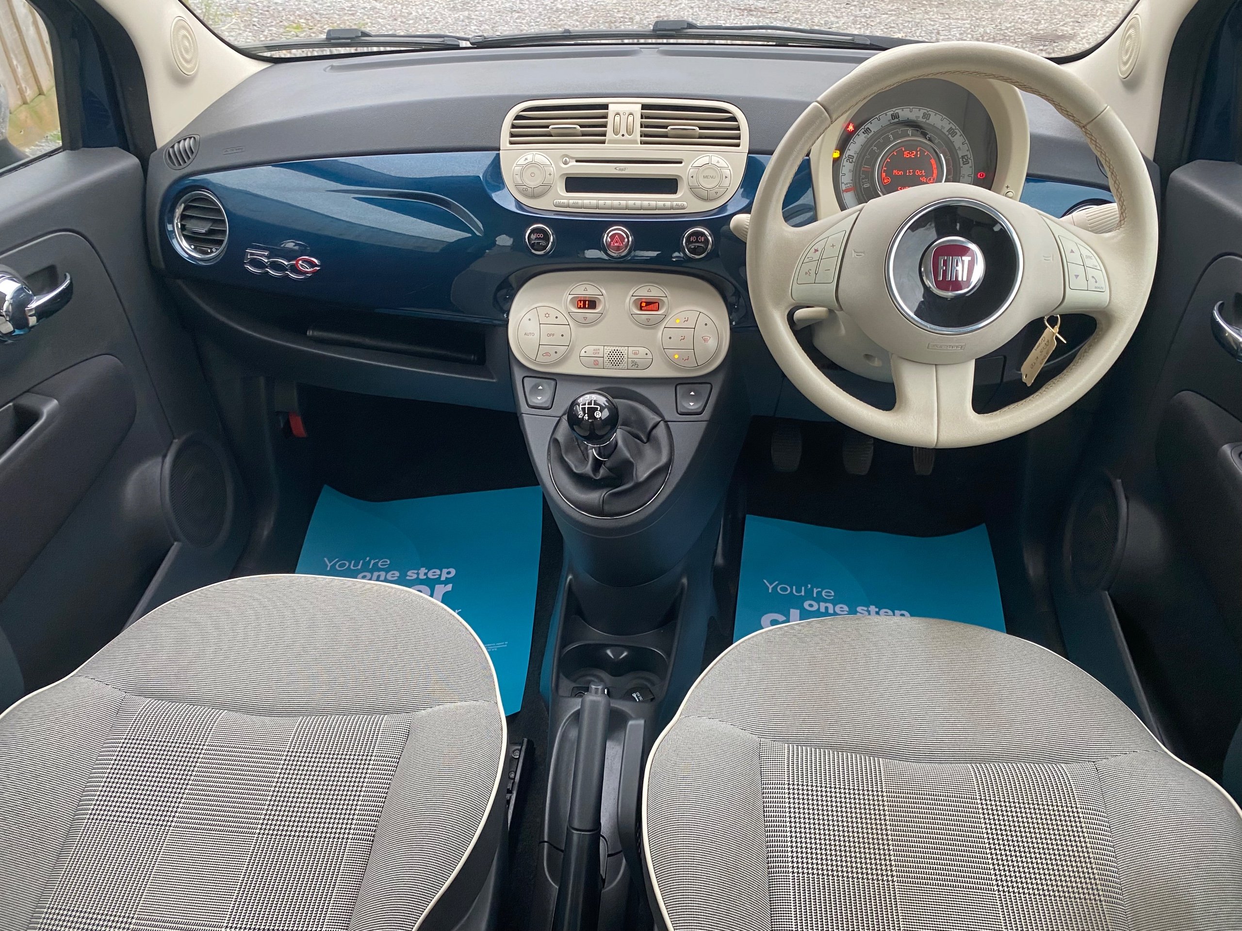 This 2015 Fiat 500c 0.9 TwinAir Lounge Convertible with a mileage of 54051 is the perfect city car, being ULEZ compliant and with MOT expiry on 20/06/2026. Its 3 doors and 4 seats make it practical for everyday use, and its 0.9L petrol engine with a manual transmission delivers 85 bhp, ensuring an enjoyable driving experience. This stylish convertible comes with features such as chrome finish door mirrors, 12V socket in the front, and Blue&Me hands-free system with USB port, while the epic blue exterior and ivory cloth interior with ivory logo and black roof provide a trendy and modern look. Whether for a weekend getaway or daily commute, this Fiat 500c is the ideal blend of fun and functionality.